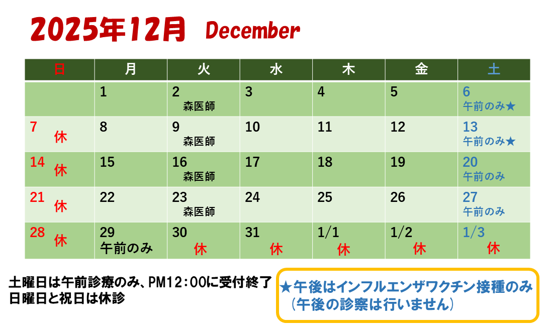 12月29日(月)の午後より1月4日(日)まで、休診いたします。