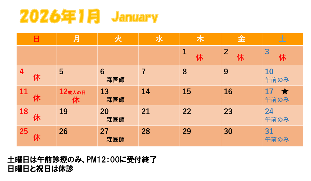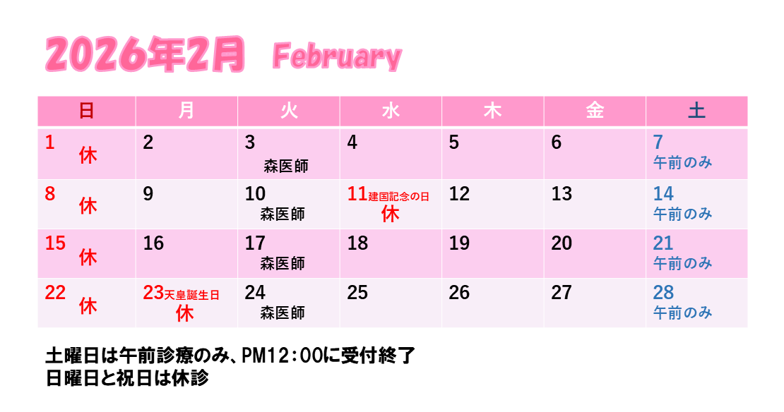 森医師の診療担当日(火曜日または代診日)には対応できません。